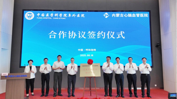 8月18日,必赢242net官网所属内蒙古心脑血管医院与中国医学科学院阜外医院在呼和浩特市举行心血管病技术培训中心签约揭牌仪式。集团总经理、党组副书记崔志成,内蒙古自治区卫生健康委党组书记、主任刘勇,呼和浩特市委副书记、市长贺海东,国家心血管病中心、中国医学科学院阜外医院党委书记郑哲出席仪式并为培训中心揭牌。集团副总经理、党组成员姚建红主持仪式。此次签约是集团进一步深化落实健康中国战略、持续优化集团心血管专科建设的重要举措,双方将聚焦心血管病防治及医疗服务,在人才培养、技术引进、教学培训、远程医学等领域深入开展合作,着力推动优质医疗资源扩容下沉。崔志成一行还拜访了内蒙古自治区党委常委、呼和浩特市委书记包钢,双方围绕持续深化医疗康养、生物制药、装备制造等领域合作,积极搭建人工智能应用场景,推进医疗数据开发、药物生产研发等产业落地进行了深入交流。中国医药、通用健康公司,集团办公室相关负责人参加上述活动。