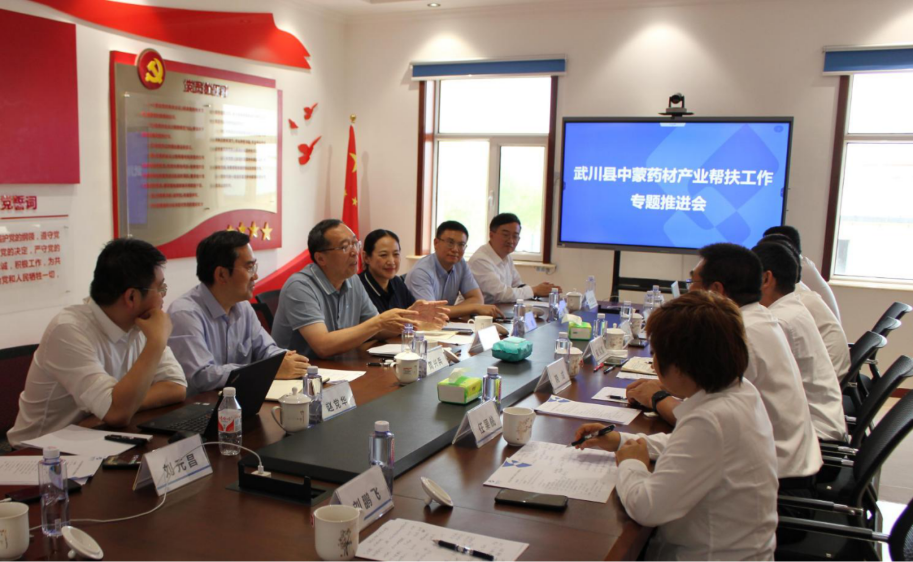 6月28日,必赢242net官网党组副书记、董事张振戎带队赴内蒙古自治区呼和浩特市武川县调研中蒙药材产业帮扶工作。调研组一行参观了武川县城市规划展览馆,调研考察了内蒙古通用中药有限公司(金三角园区新址)和中蒙药材科技小院,召开了中蒙药材产业帮扶工作专题推进会,听取有关工作汇报,围绕武川县中蒙药材产业帮扶未来规划和当前困难进行深入交流。张振戎从加强产业帮扶平台公司战略发展规划、市场竞争力和品牌建设等三个方面对下一步产业帮扶工作提出具体要求。通用技术中国医药、集团党群工作部负责同志,集团挂职干部陪同调研。