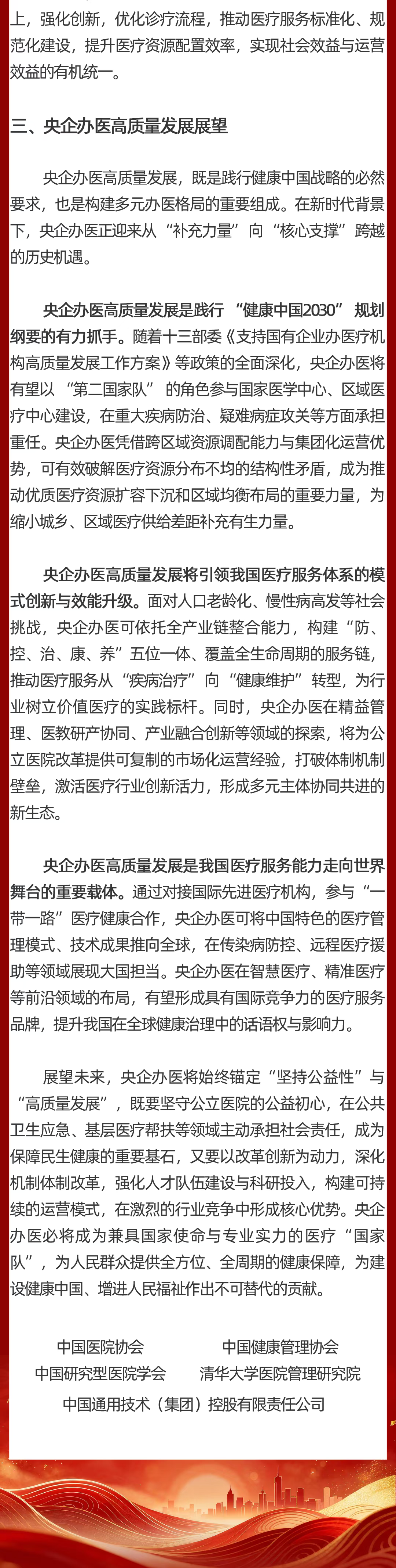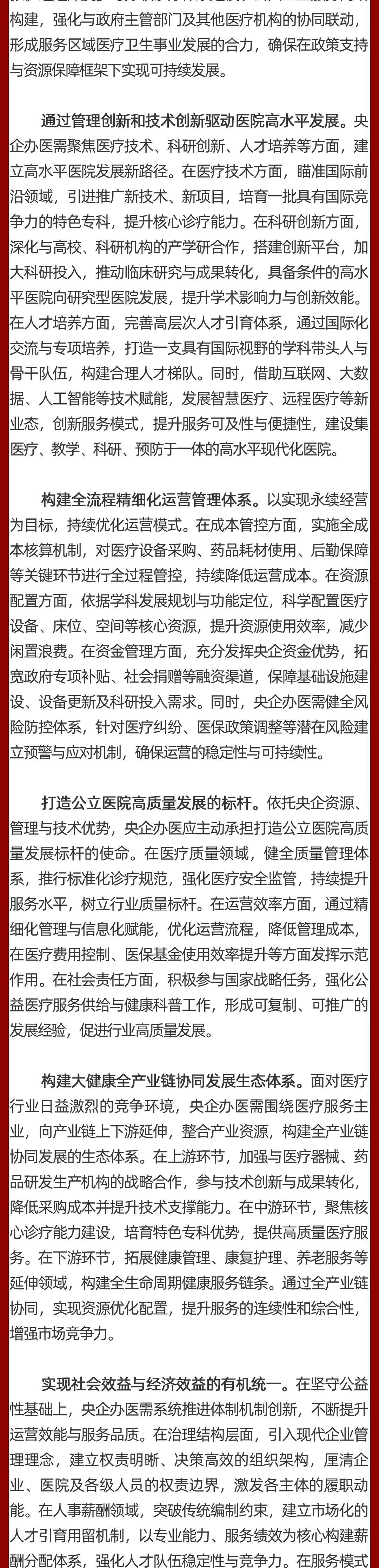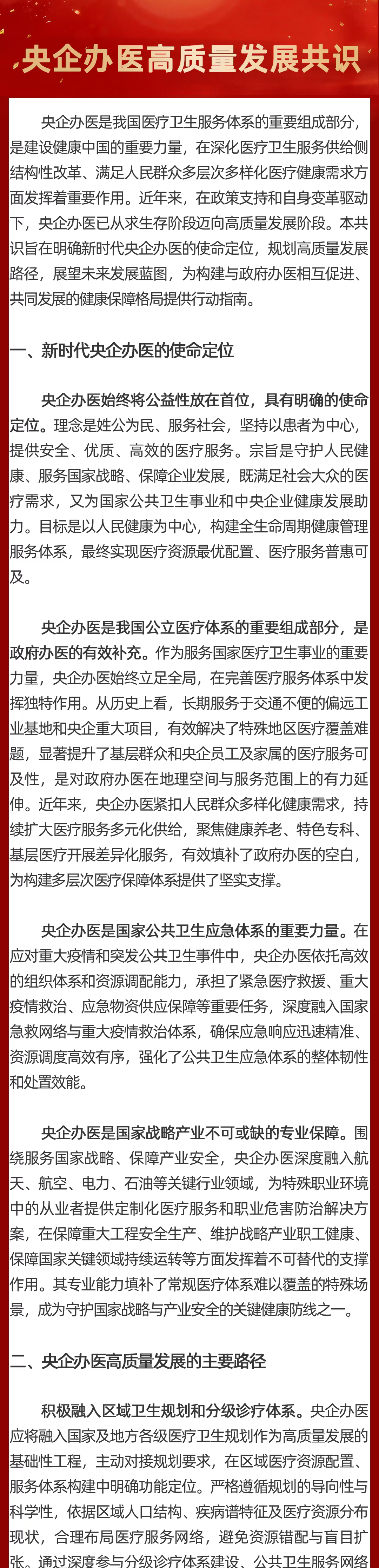 现将《共识》全文发布如下,期待与各方携手,共同推动央企办医高质量发展,为增进人民健康福祉贡献更大力量!